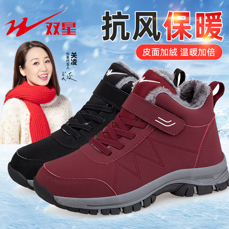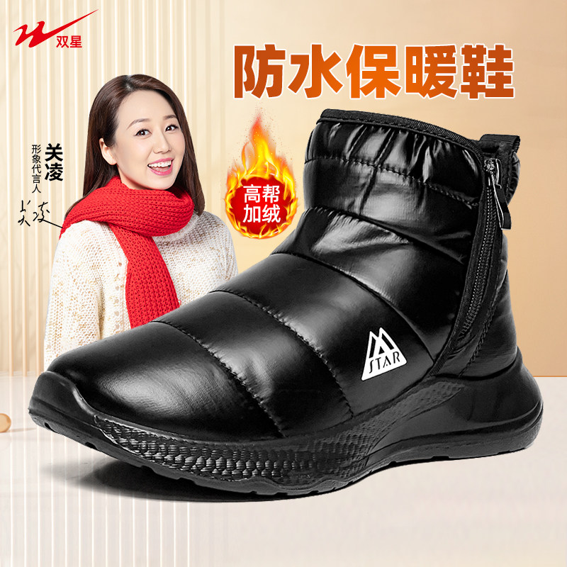 双星女鞋冬季加绒保暖棉鞋防水雪地靴女款老人鞋妈妈鞋女款运动鞋