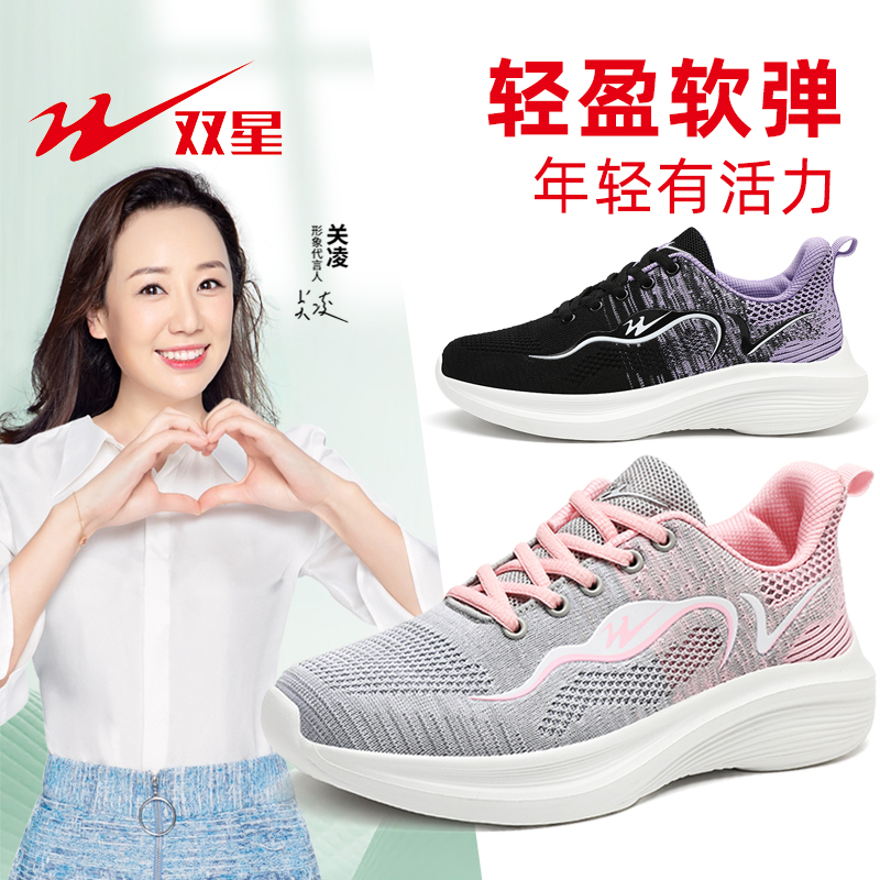双星运动鞋女2024春季新款网面女鞋轻便旅游休闲鞋跑步鞋旗舰正品