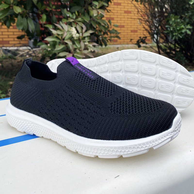 双星老人鞋女2023新款春季一脚蹬女鞋平底单鞋透气网鞋黑色运动鞋
