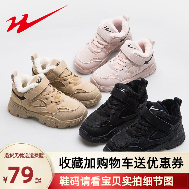 双星童鞋秋冬季新款男童女童中大童运动鞋加绒保暖宝宝鞋轻便棉鞋