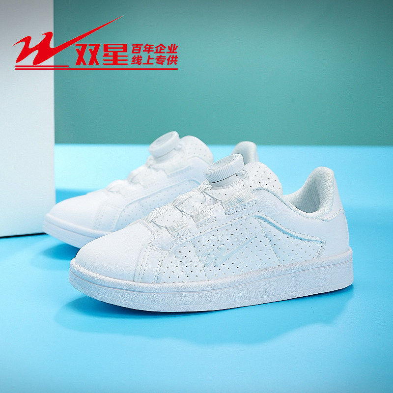 双星童鞋秋季透气六一儿童小白鞋学生表演鞋旋转纽扣运动鞋男女童
