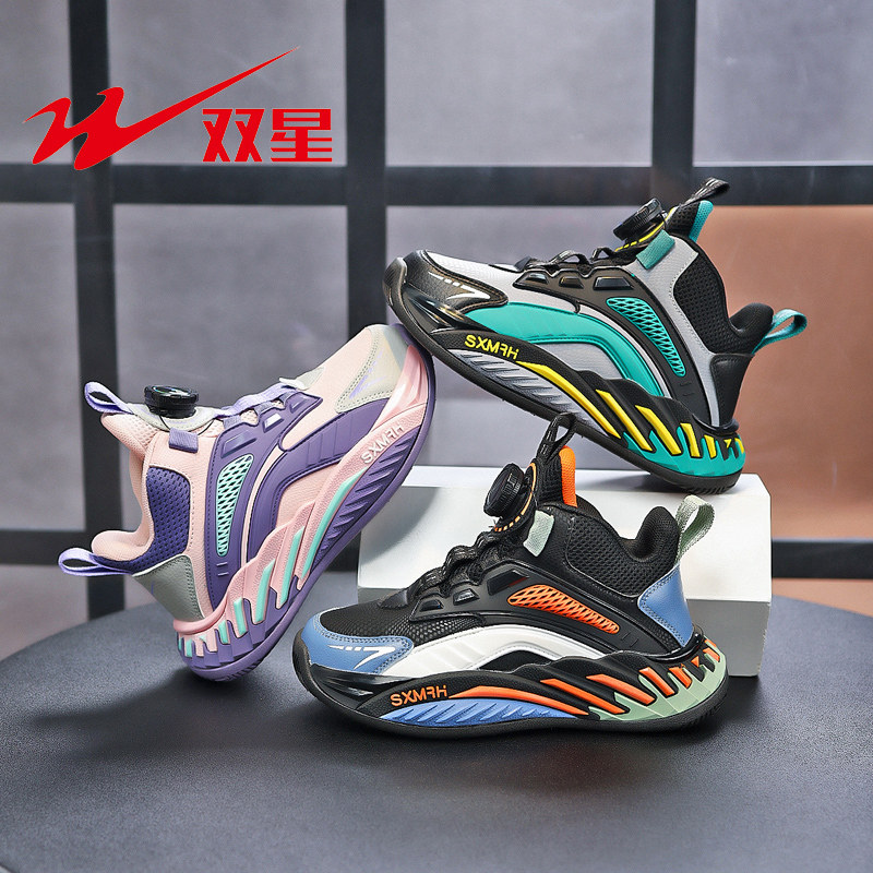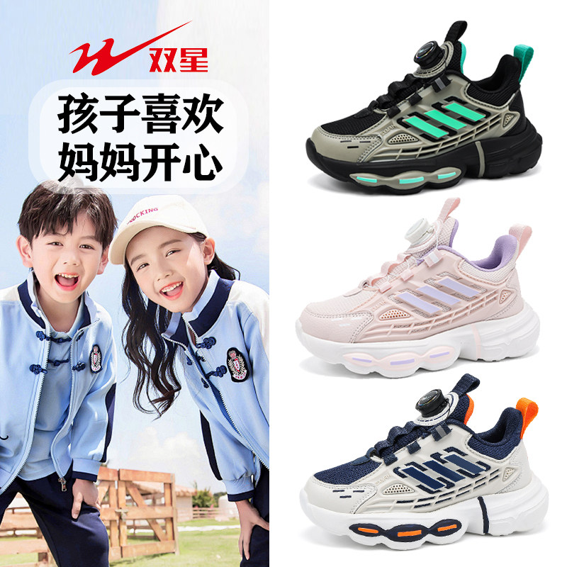 双星运动鞋儿童小学生童鞋男童男孩透气软底舒适女童旋钮秋季新款