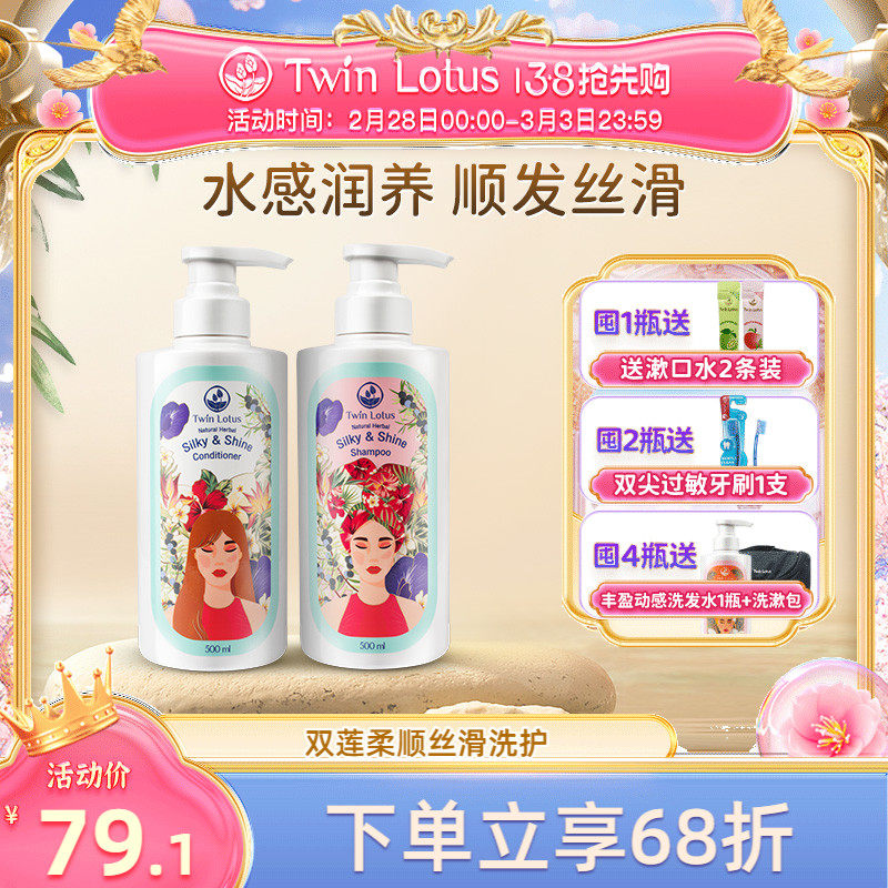 双莲植物丰盈洗发水护发素500ml细软发适用洗头滋润花香泰国