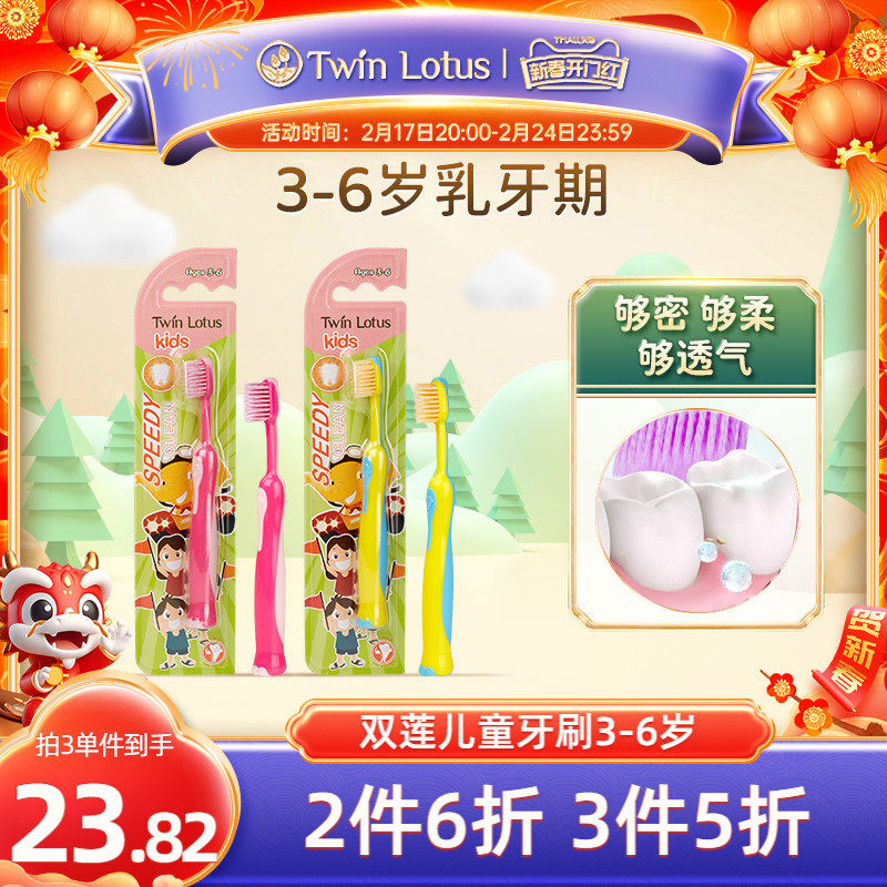 泰国双莲3-6岁款柔软呵护牙龈口腔清洁男女小孩螺旋软毛儿童牙刷