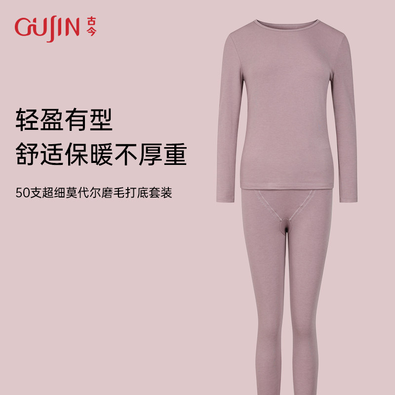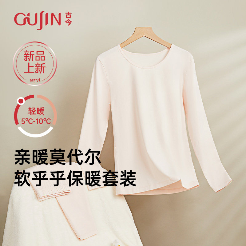 古今@轻薄款秋衣秋裤女士莫代尔德绒保暖内衣套装男无痕美体秋款