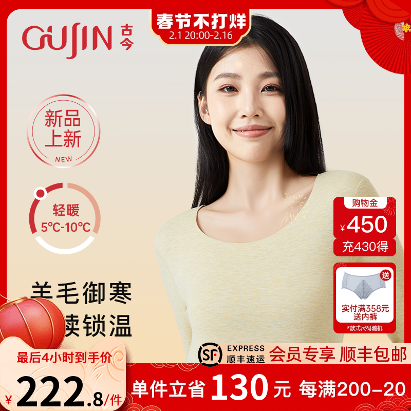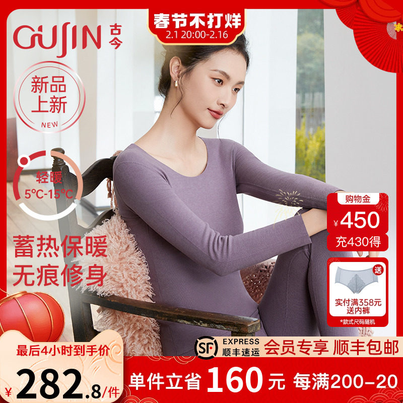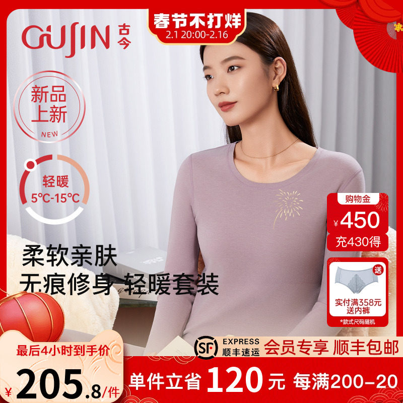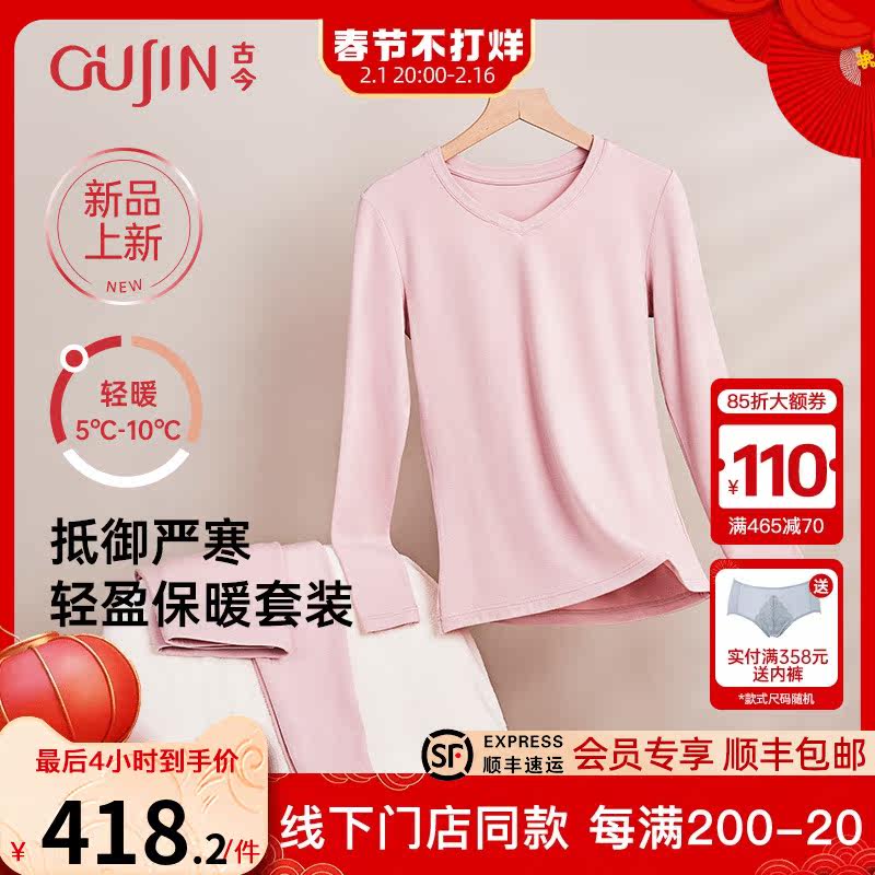 【商城同款】古今保暖内衣女秋冬季套装绒感发热秋衣秋裤GDC36377