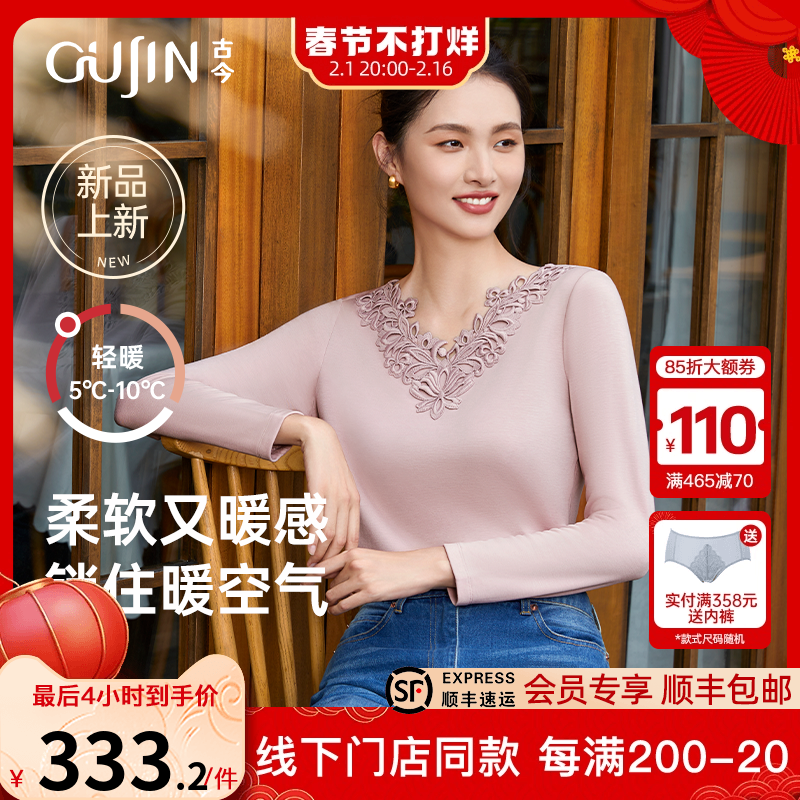 古今商场同款女士纯色舒适亲肤刺绣花边保暖上衣3R376