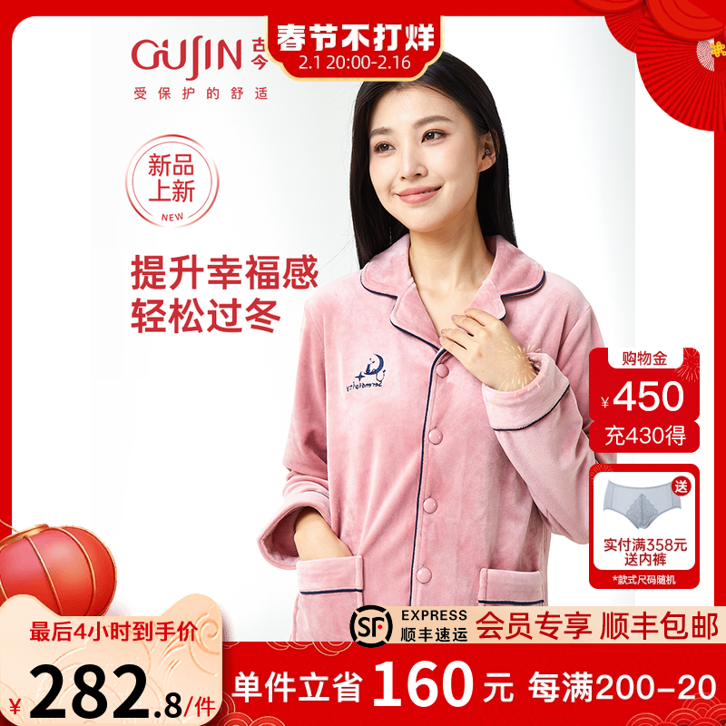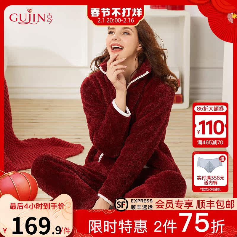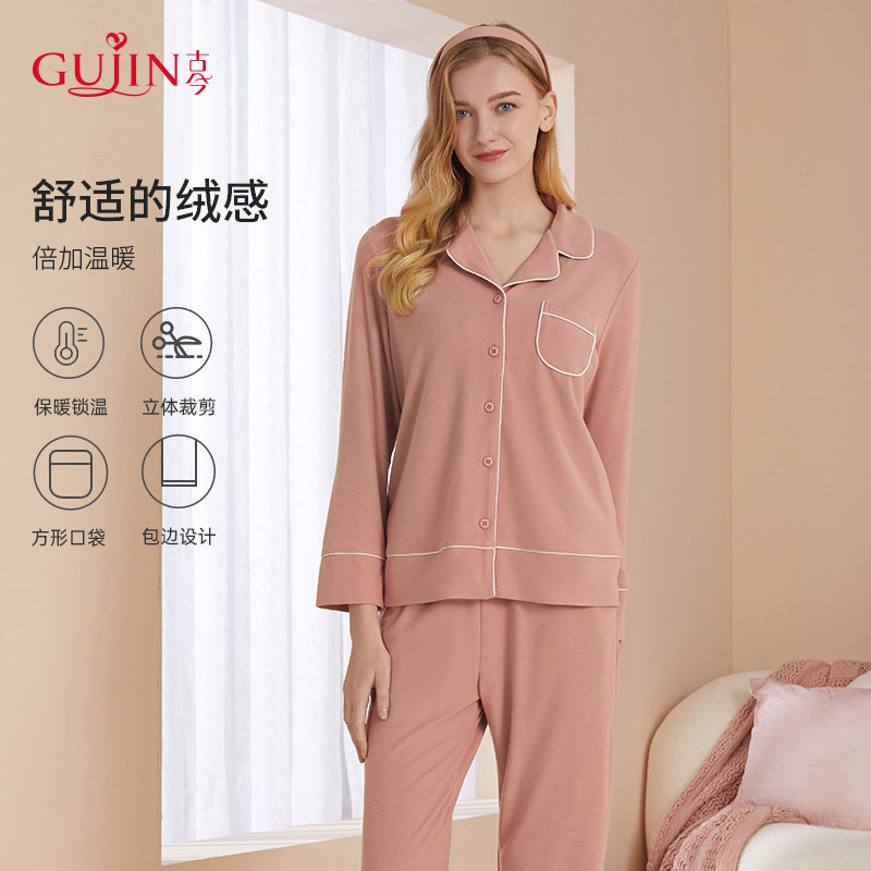 古今绒感舒适加厚保暖秋冬家居服套装睡衣女7L676