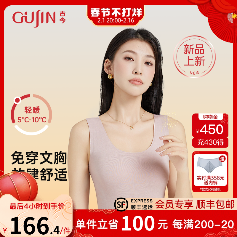 古今@德绒保暖背心女内搭Bra蚕丝美肤杯免穿文胸聚拢打底内衣秋冬
