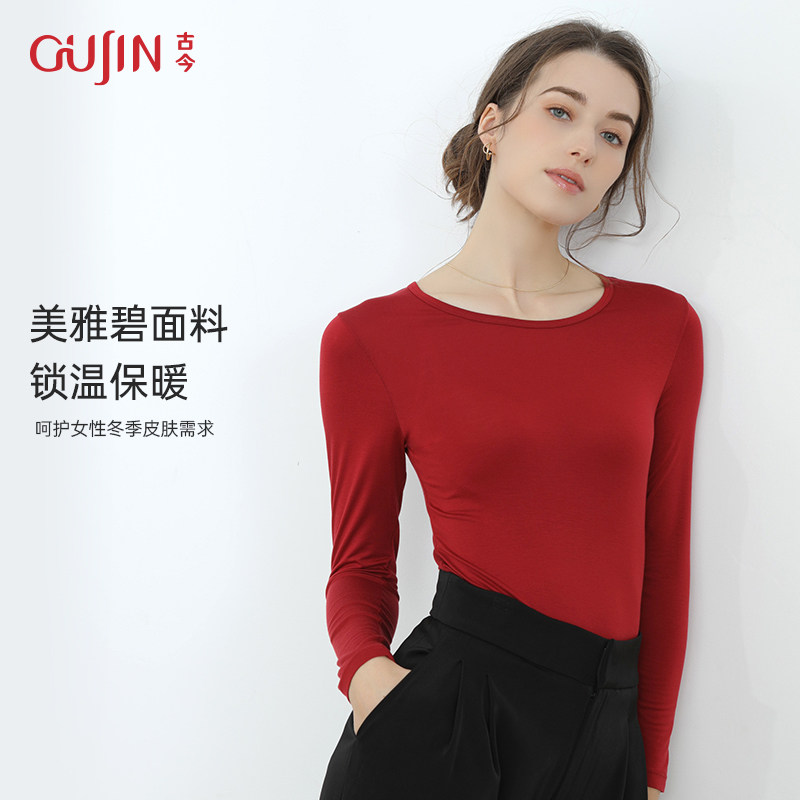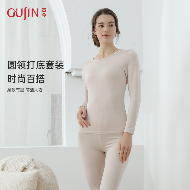 古今薄款圆领百搭秋冬简约时尚高弹保暖打底套装女3L591