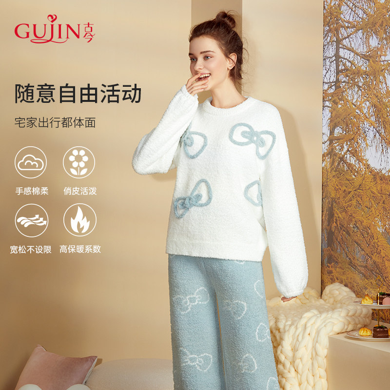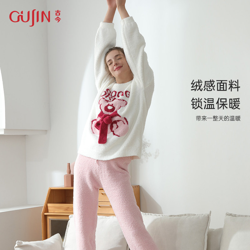 古今内衣舒适可爱半边绒保暖长袖长裤可外穿家居套装2件套女7M621