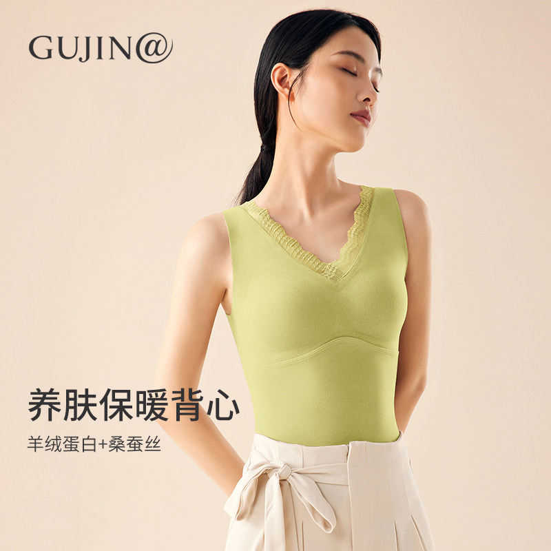 古今保暖背心女带胸垫上衣含蚕羊绒蕾丝内衣女打底女士秋冬保暖衣