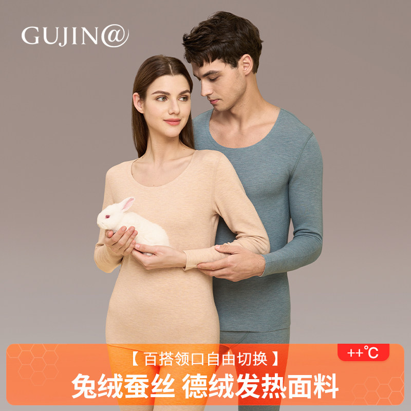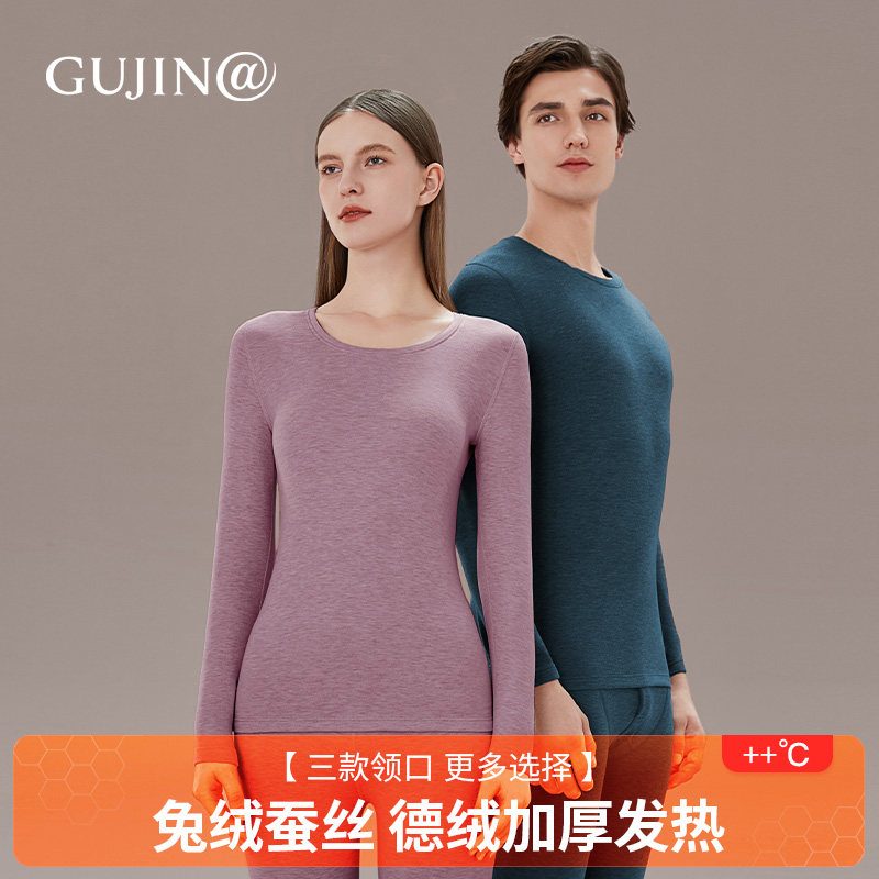 古今@德绒发热保暖内衣情侣套装兔绒桑蚕丝无痕中高圆领秋冬新款