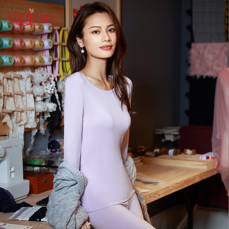 古今薄款秋冬保暖内衣女高弹圆领打底修身秋衣裤套装GDC33291