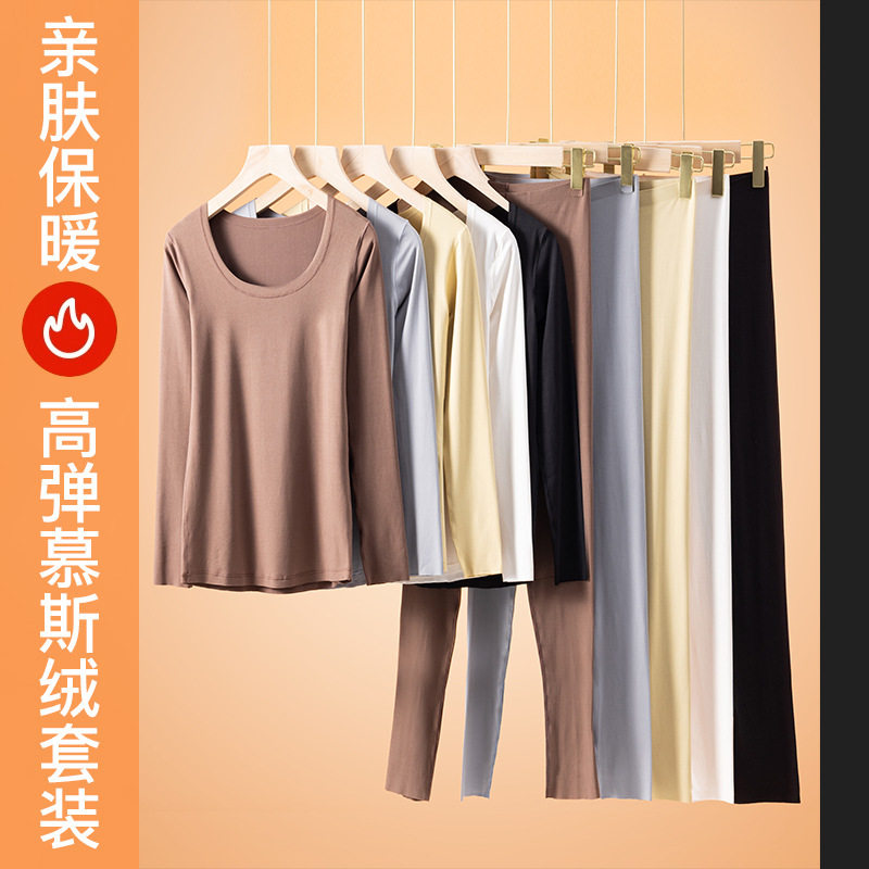古今商场同款无痕随心裁圆领不易卷边微绒保暖套装3R593