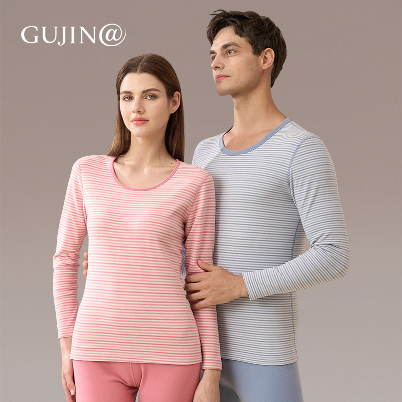 古今@青少年秋衣秋裤套装男加绒加厚保暖内衣女圆领条纹2024新款
