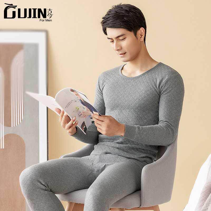古今三层夹棉加厚保暖内衣男士空气棉秋冬棉毛衫纯棉秋衣秋裤套装