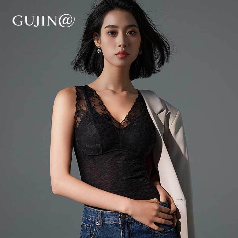 GUJIN古今女士唯美蕾丝拼接吊带背心莫代尔柔软亲肤打底上衣38222