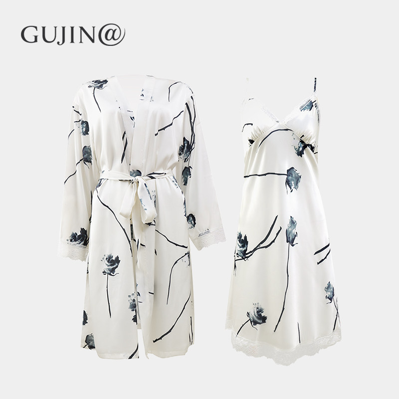古今@冰丝睡衣女夏季薄缎面仿真丝绸家居服新款性感吊带睡裙套装