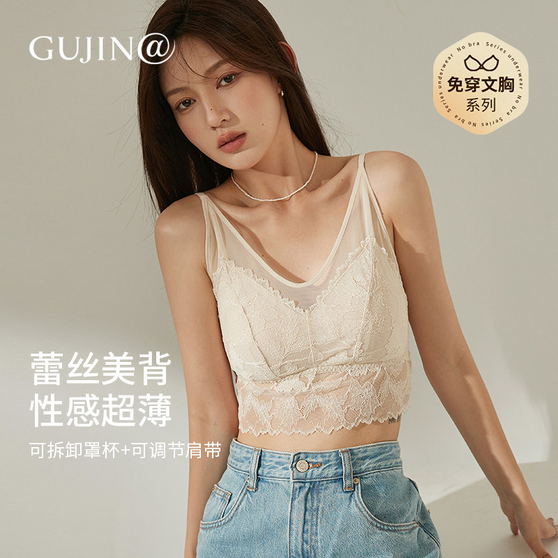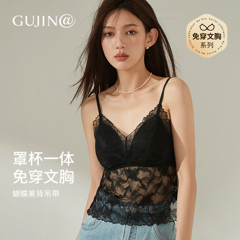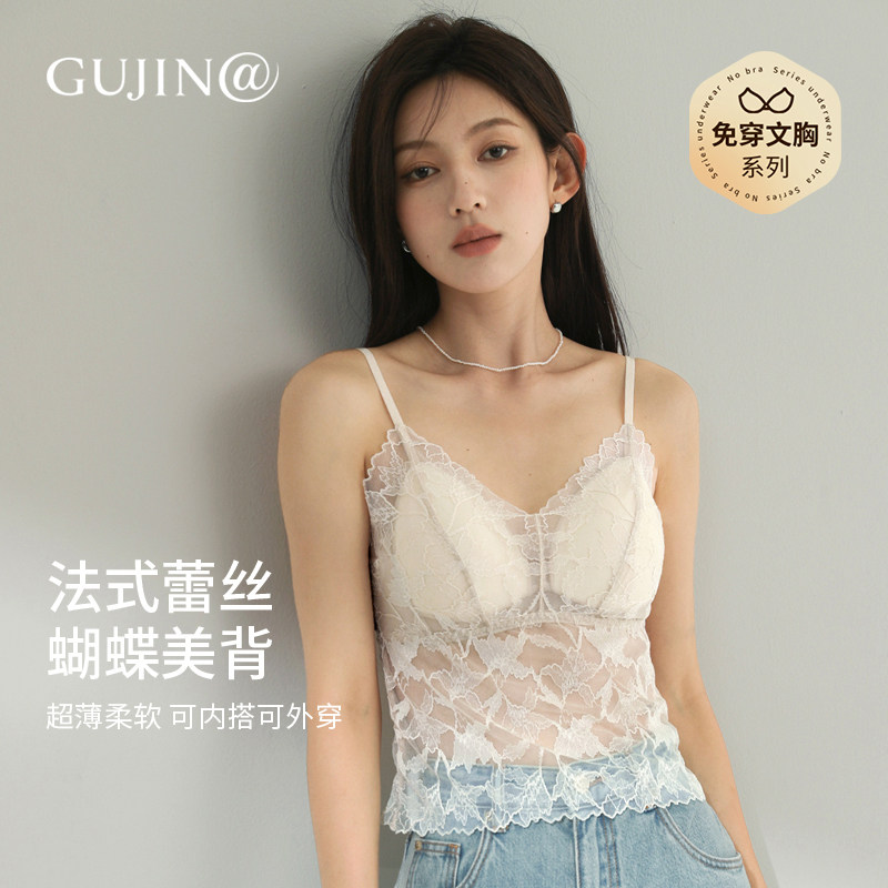 古今@【羽翼轻纱美背】蕾丝吊带背心内衣带杯垫文胸性感外穿百搭