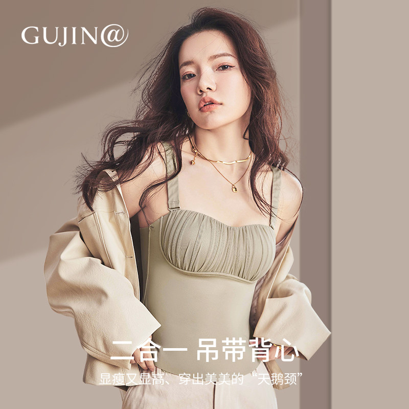 古今@杯面法式褶皱内搭带胸垫吊带内衣女修身显瘦显高可外穿背心