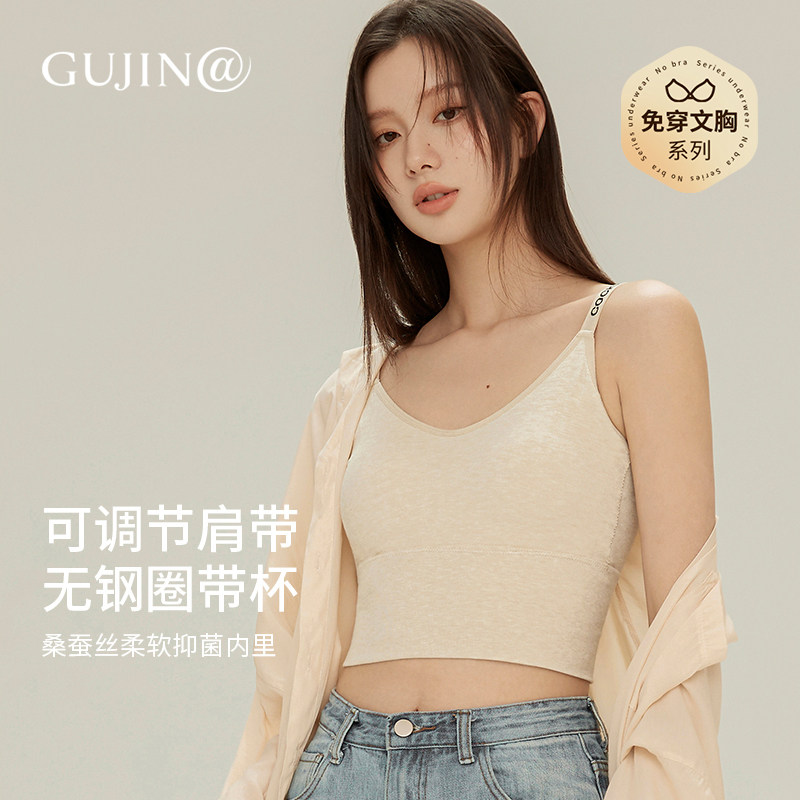 古今内衣无钢圈固定杯乳胶文胸舒适凉感小吊带背心女内搭美背胸罩