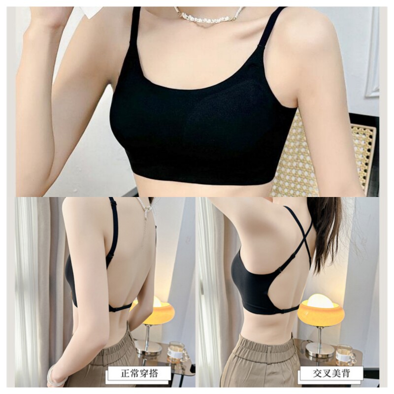美古今吊带抹胸内衣冰丝固定杯带垫文胸交叉美背心女内搭外穿胸罩