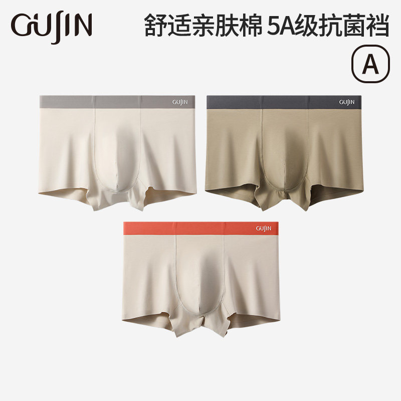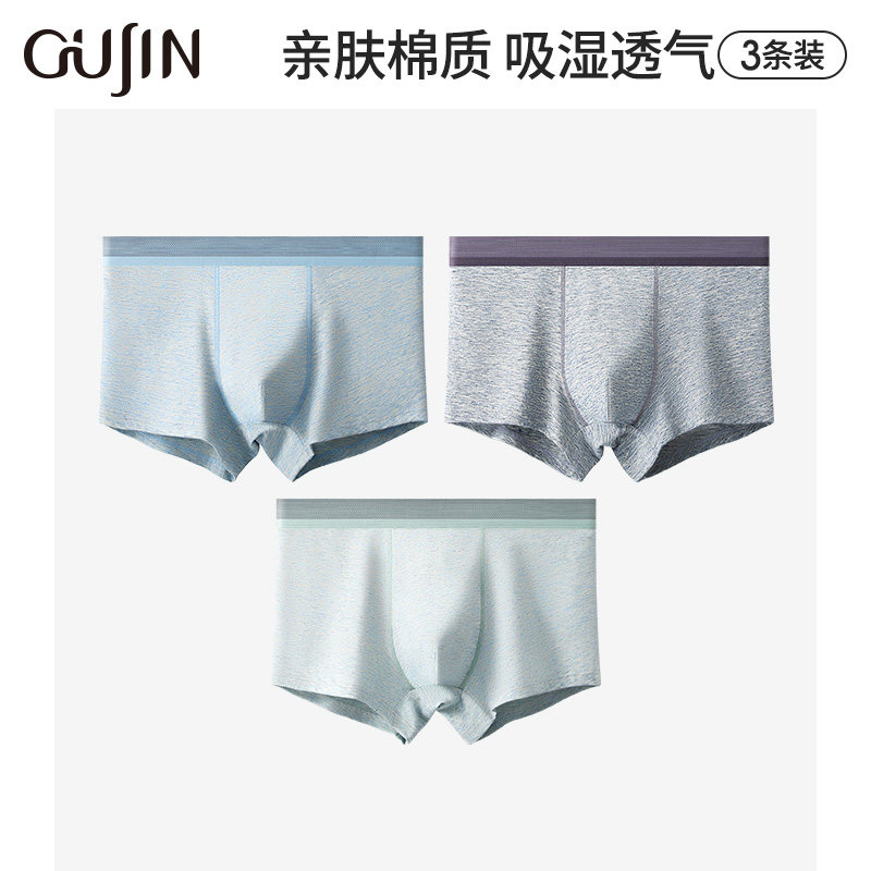 肌理精梳棉|古今@纯棉男士内裤全棉抗菌透气无痕中腰平角裤新款