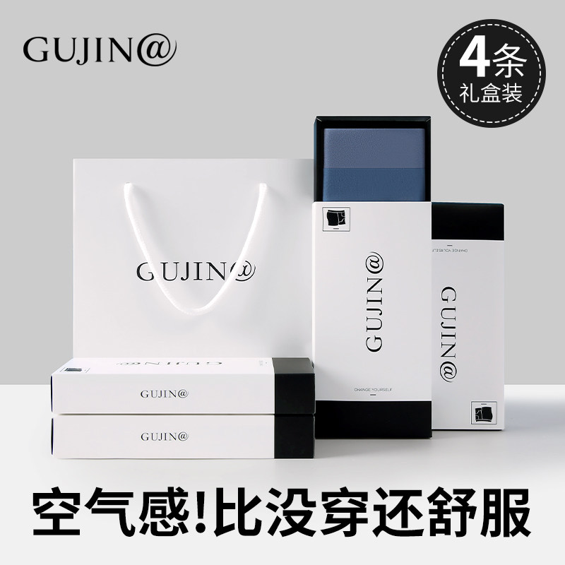 【4条高档礼盒装】古今@双面莫代尔男士内裤抗菌裆透气无痕平角裤