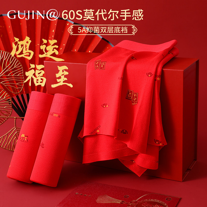 古今@本命年男士内裤红色纯棉鸿运短裤男生龙年平角裤结婚四角裤