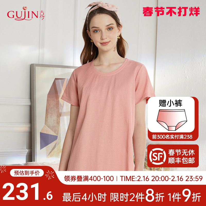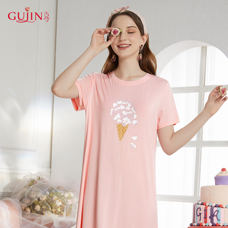 古今商场同款夏季棉质高弹柔软短袖圆领印花休闲家居睡裙女7P368