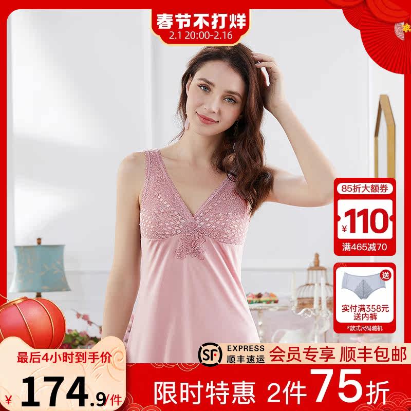 古今舒适无袖半身连衣裙睡裙睡衣女夏季凉爽性感家居服7L187