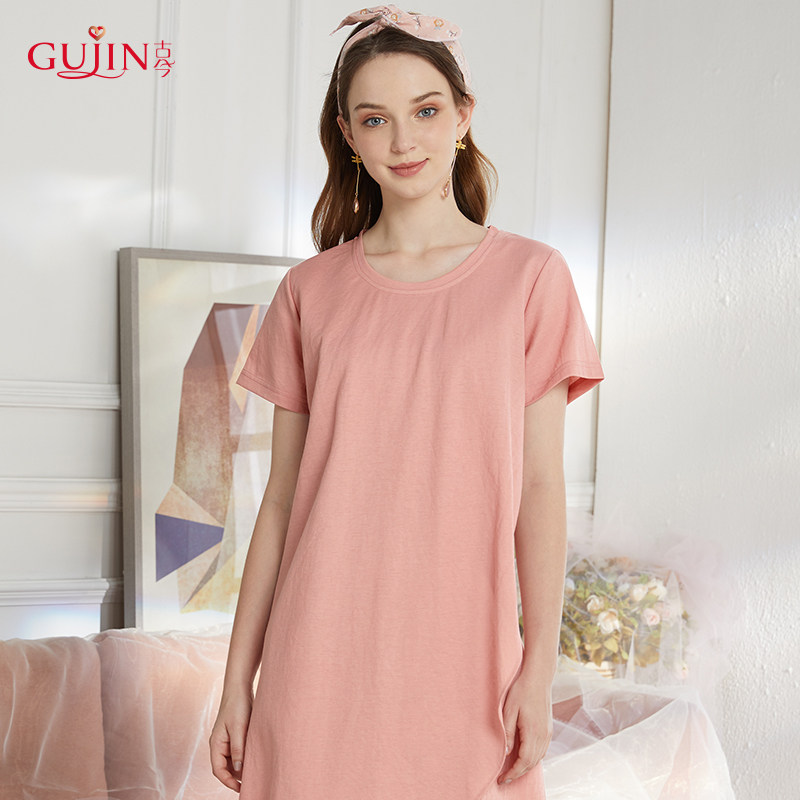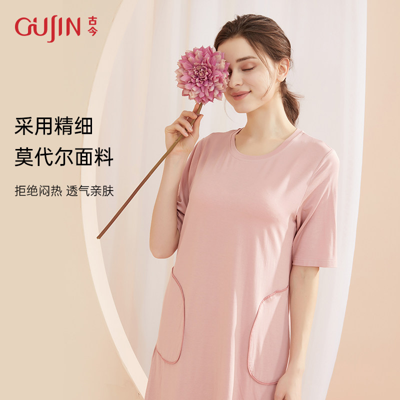 古今商场同款夏季莫代尔丝滑中袖圆领家居服斜插口袋睡裙女7P356