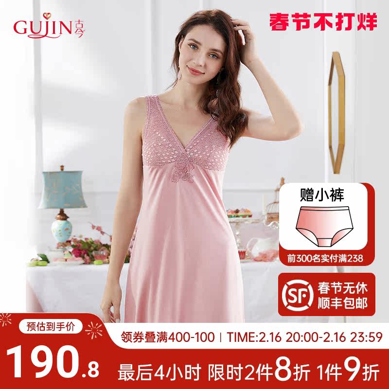 GUJIN古今女士睡衣莫代尔柔软亲肤吊带裙刺绣性感中款睡裙79752