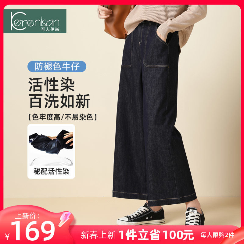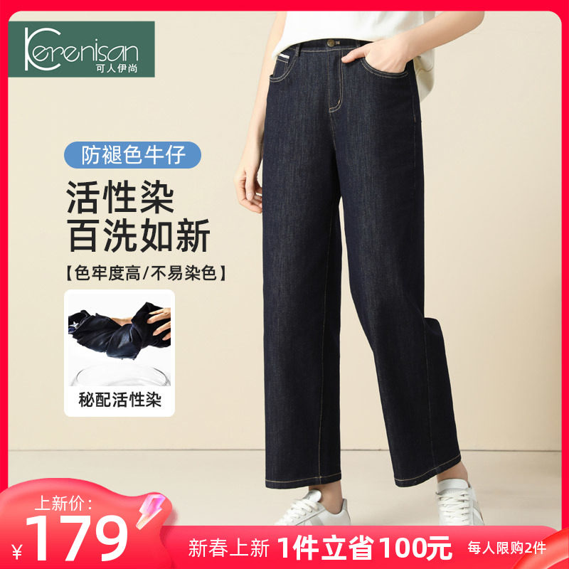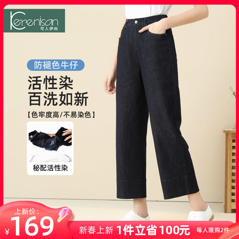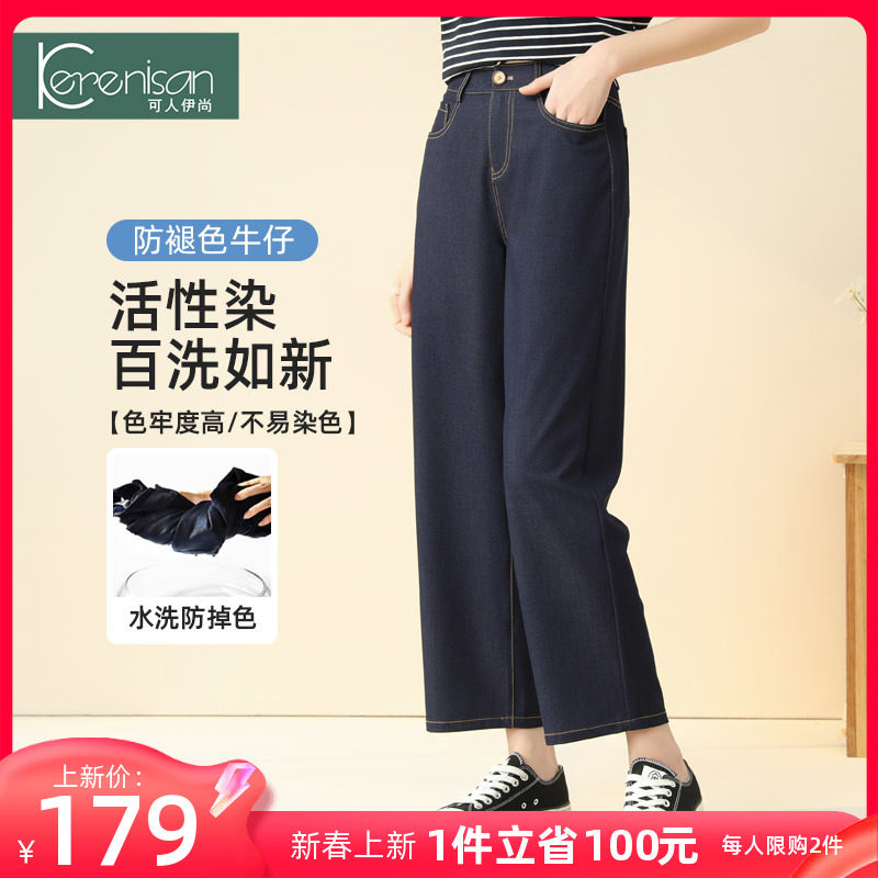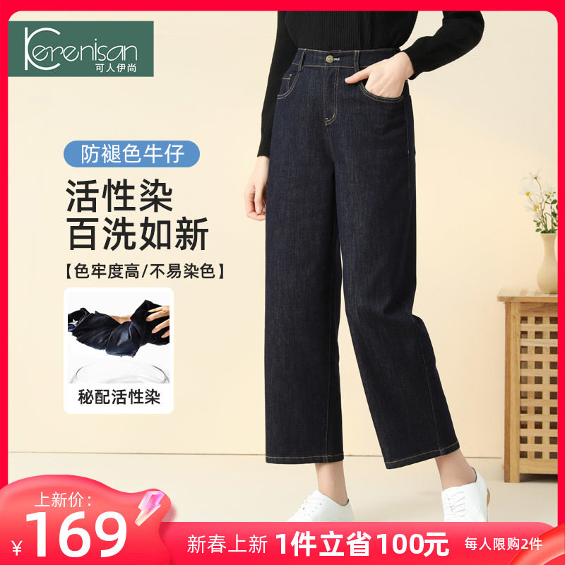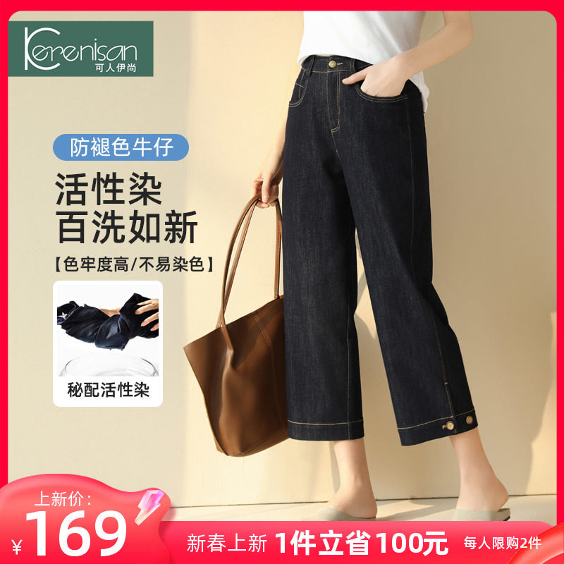 防掉色牛仔裤女阔腿裤大码宽松休闲九分裤春季新款高腰显瘦直筒裤
