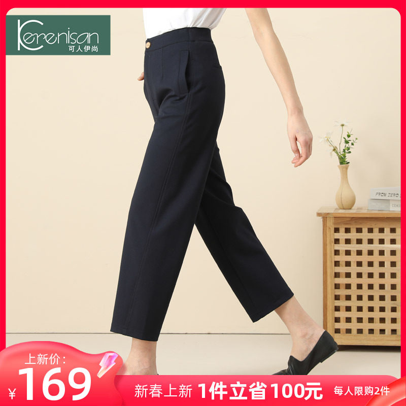 2024春季新款哈伦裤女高腰萝卜裤藏青色宽松休闲裤弹力九分镰刀裤