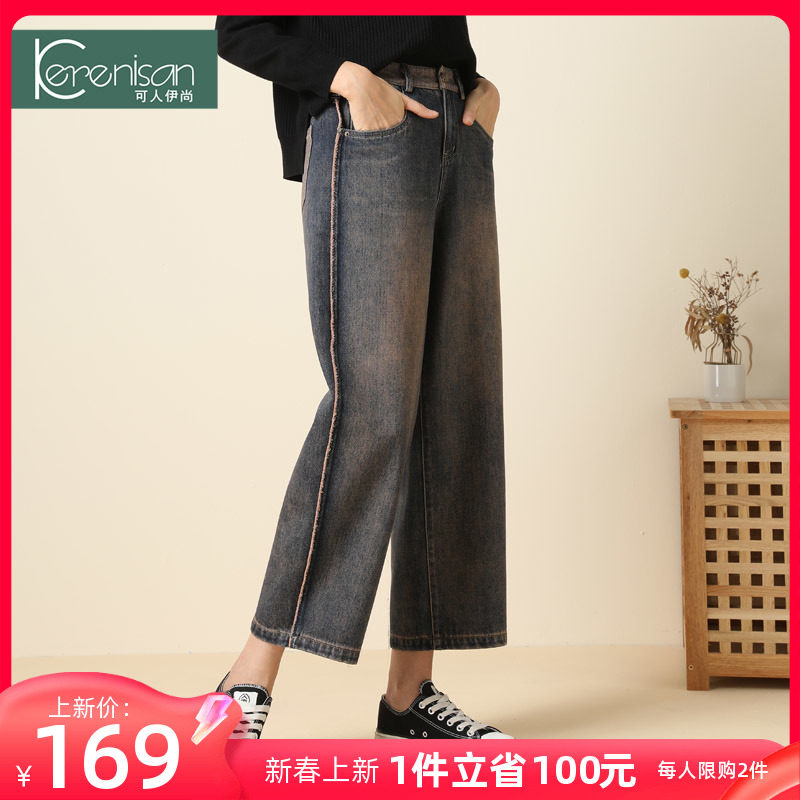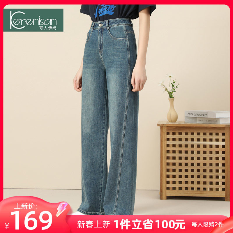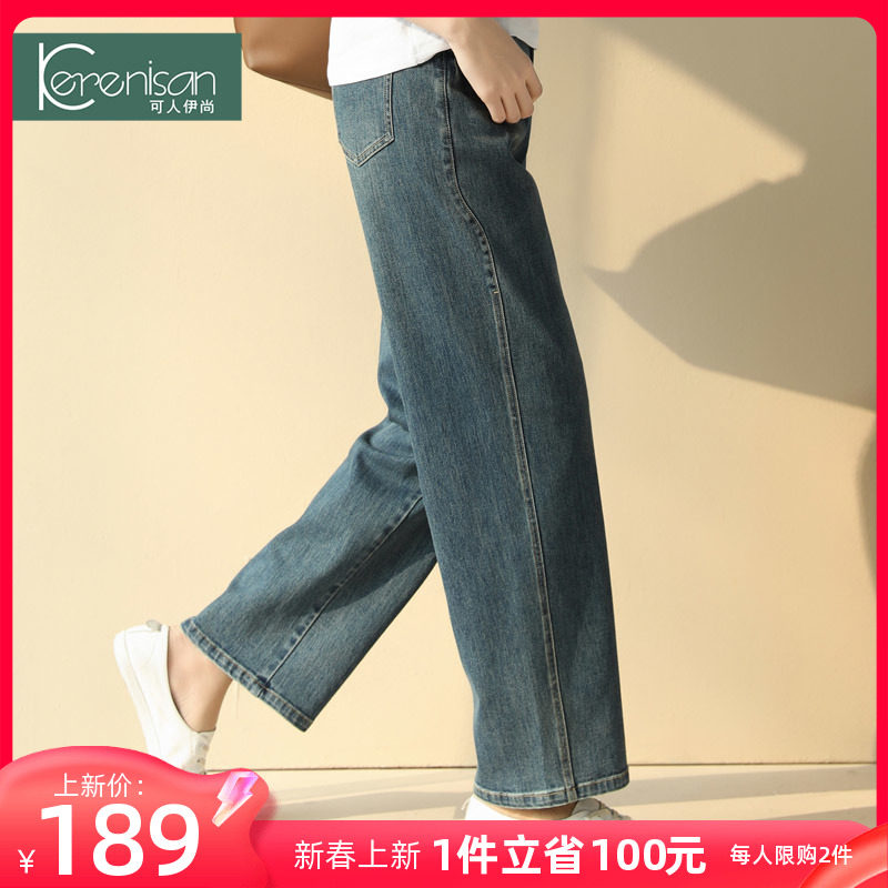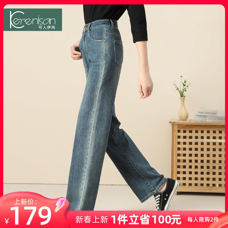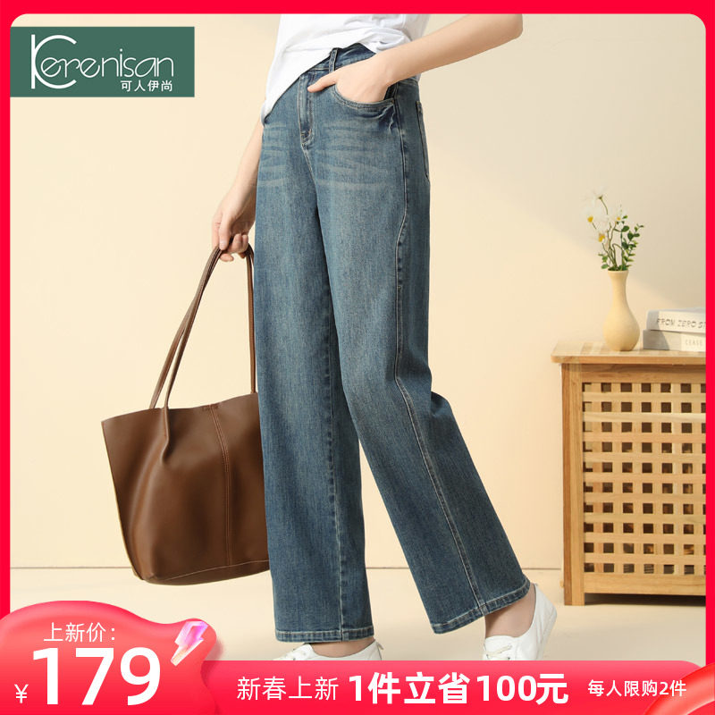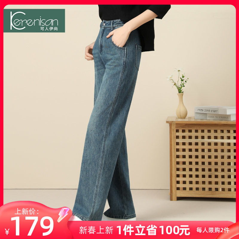 牛仔裤女阔腿裤2024春装新款复古显瘦休闲裤大码怀旧直筒裤阔脚裤