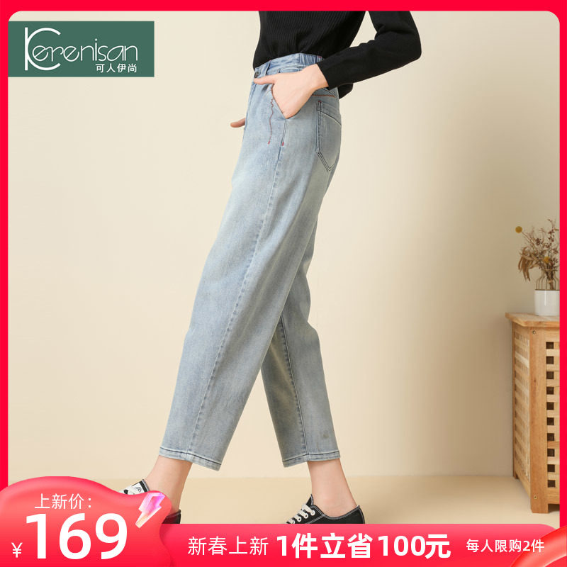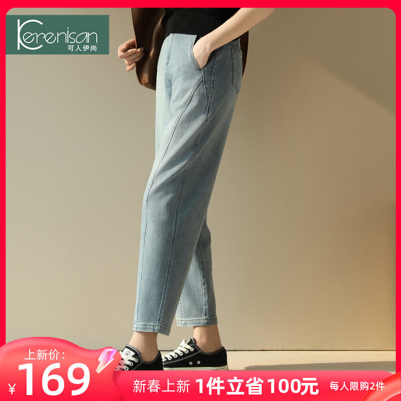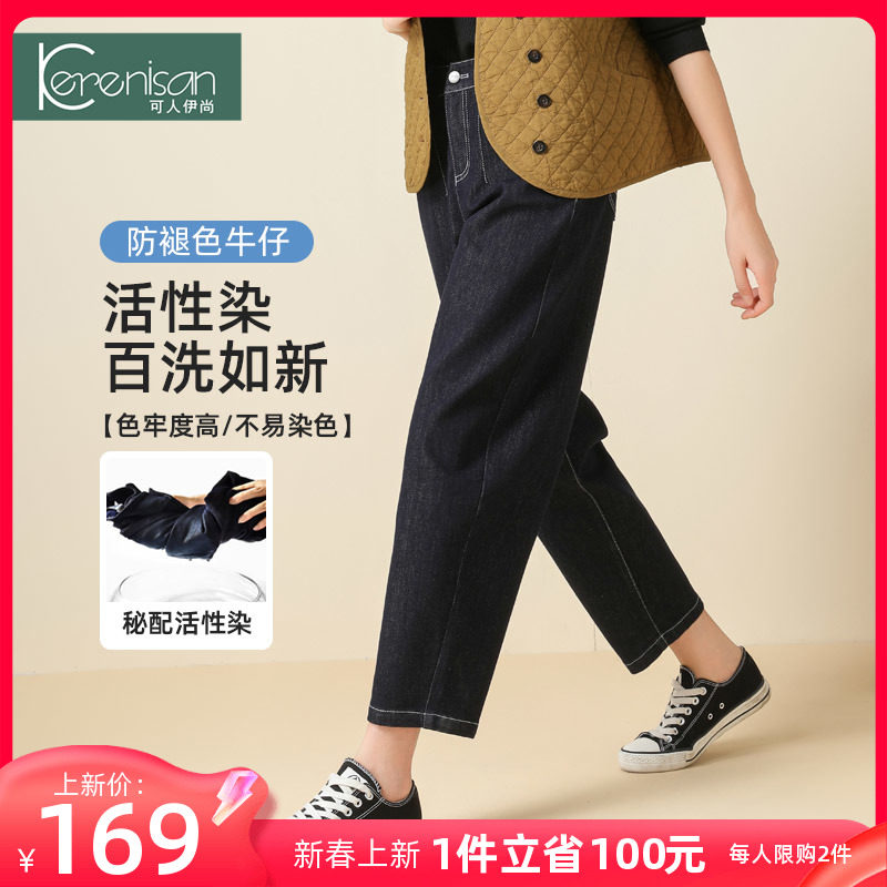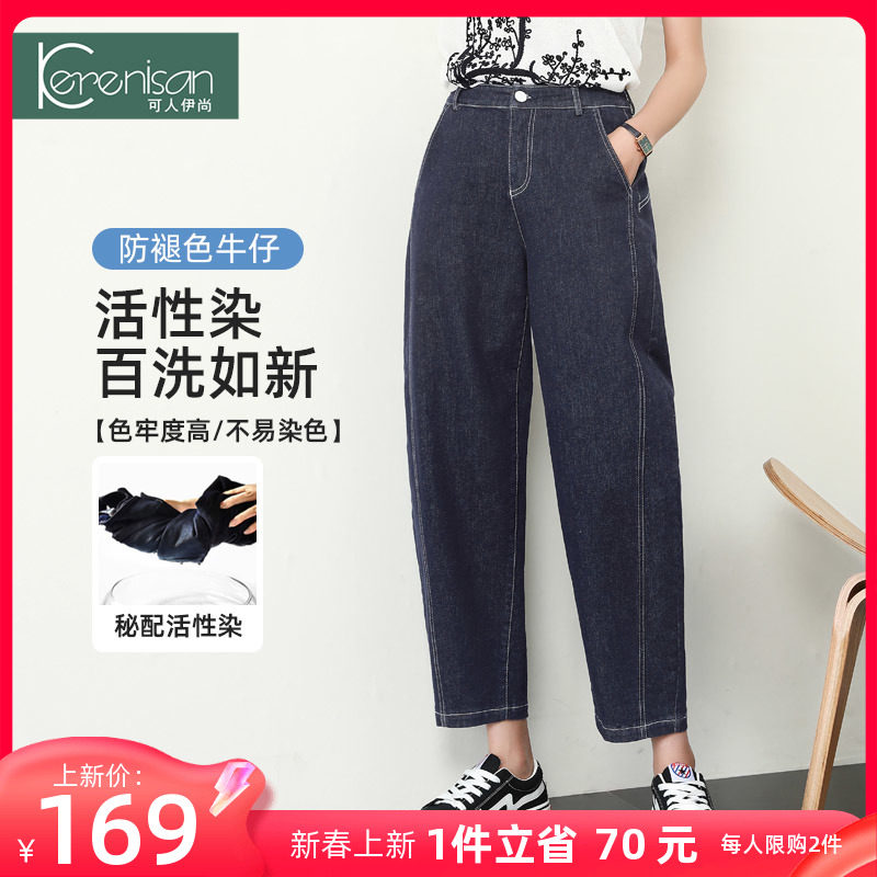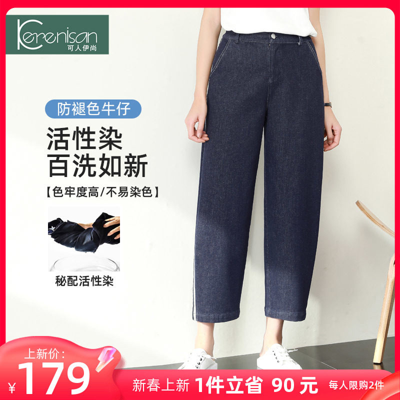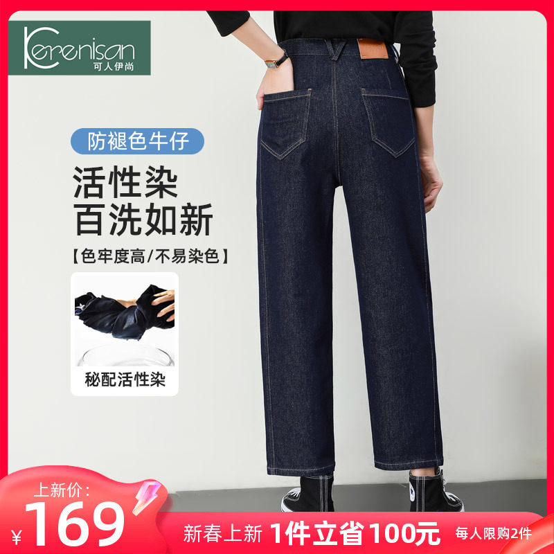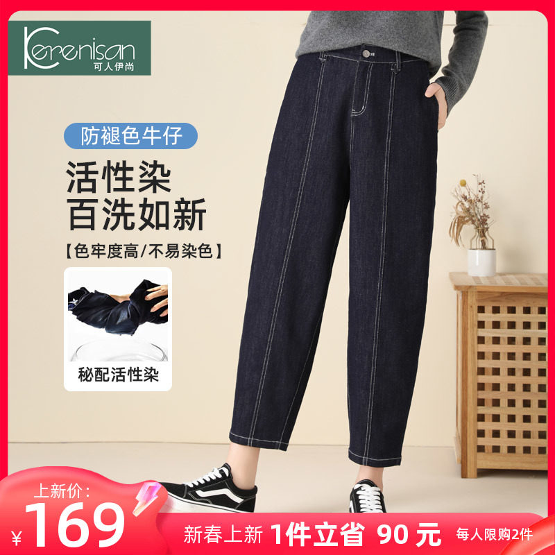 防掉色牛仔裤女哈伦裤2024春季新款高腰宽松休闲裤弹力九分萝卜裤