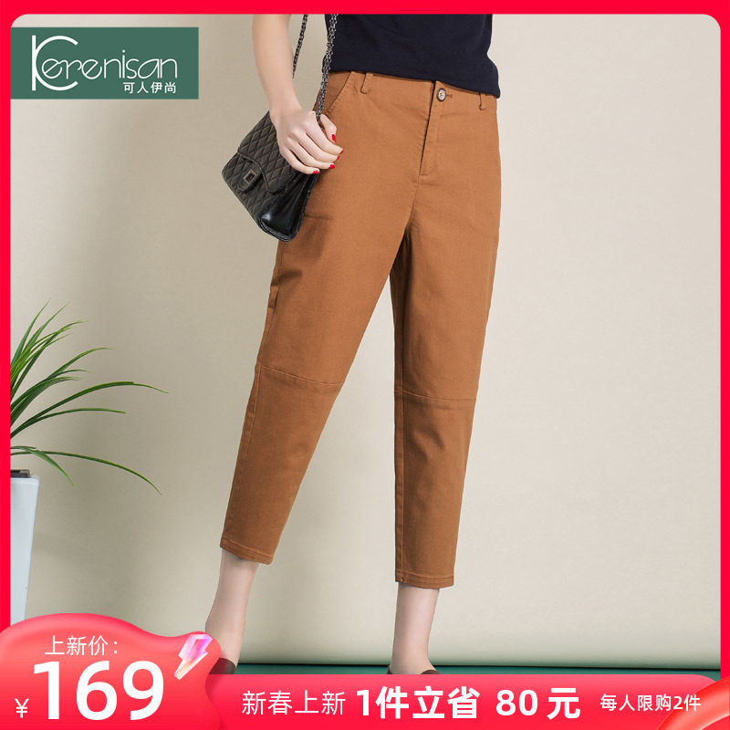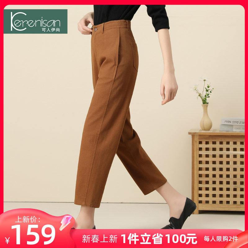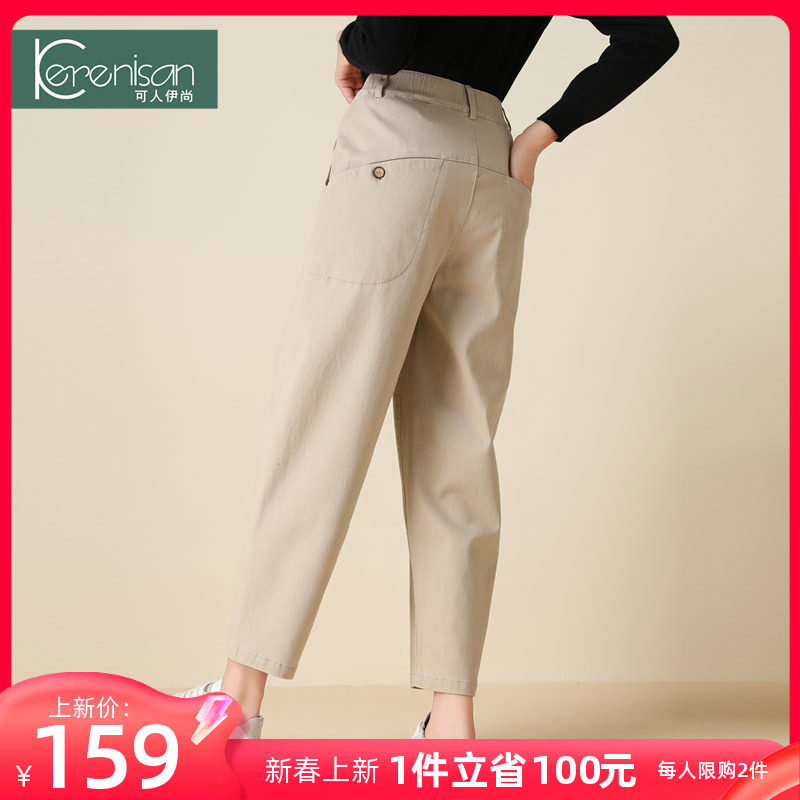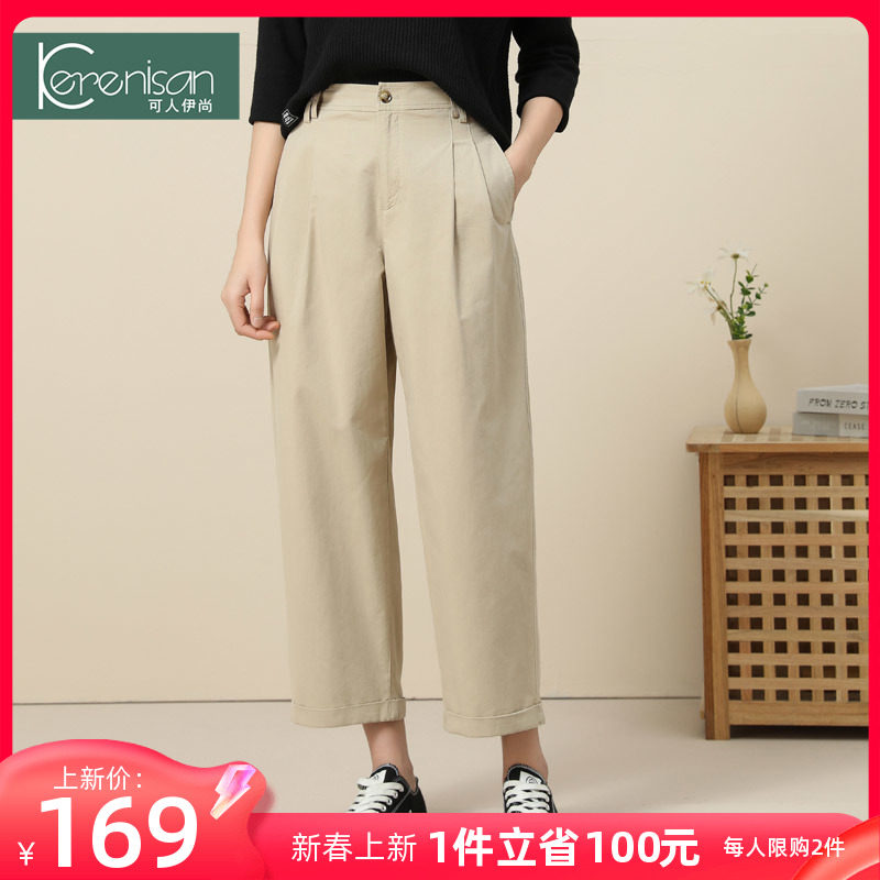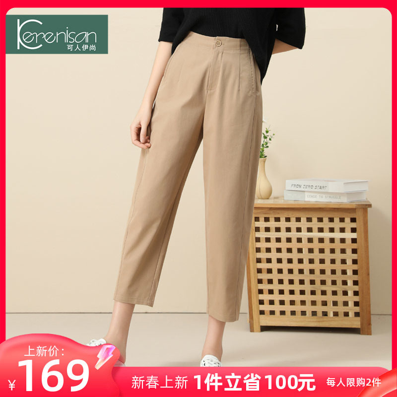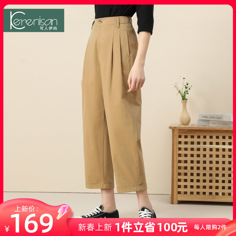 哈伦裤女春季新款纯棉休闲九分裤高腰显瘦牛仔裤卡其色宽松休闲裤
