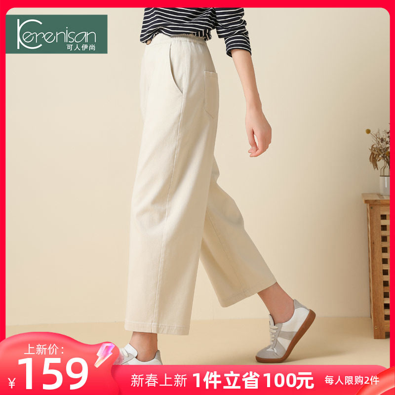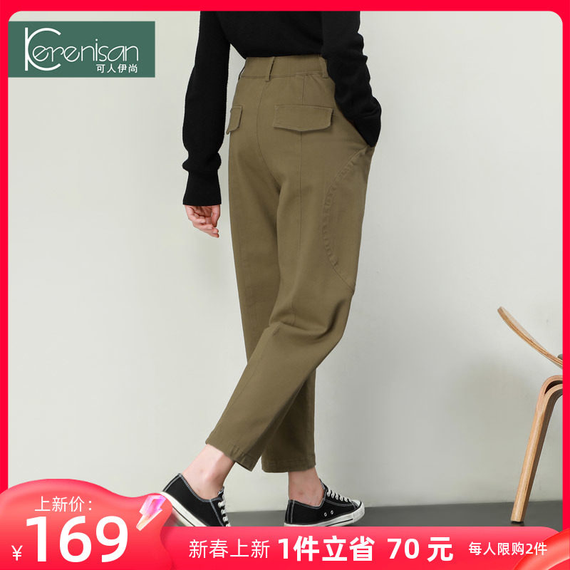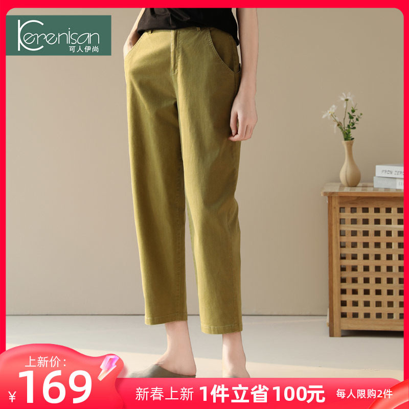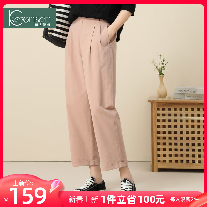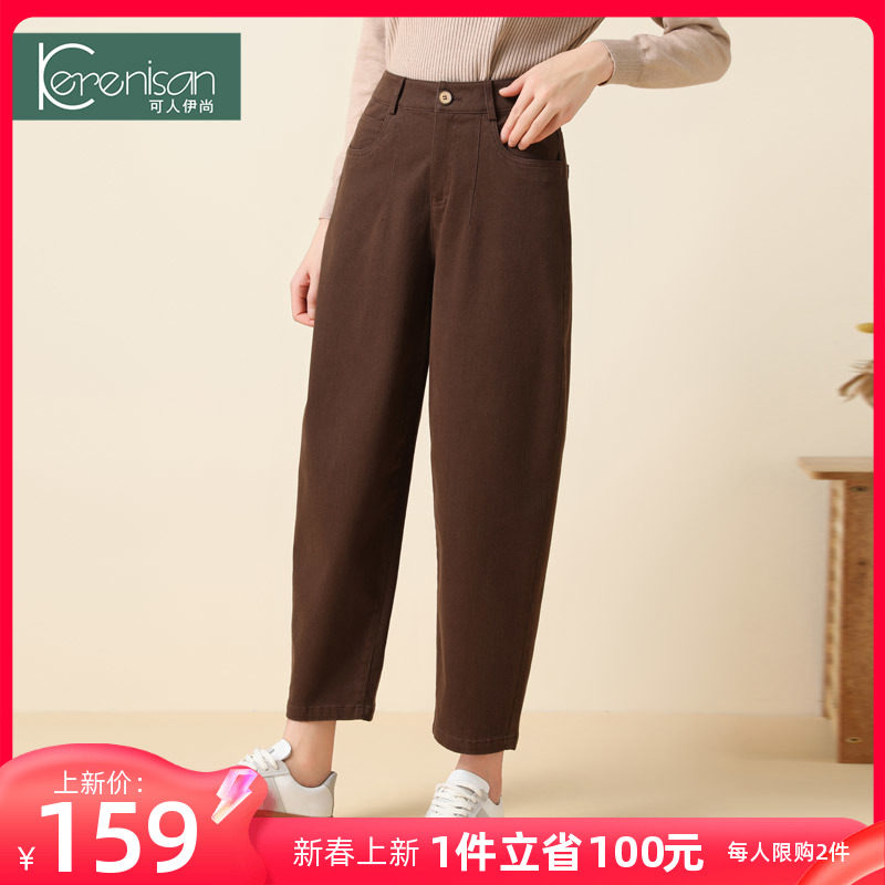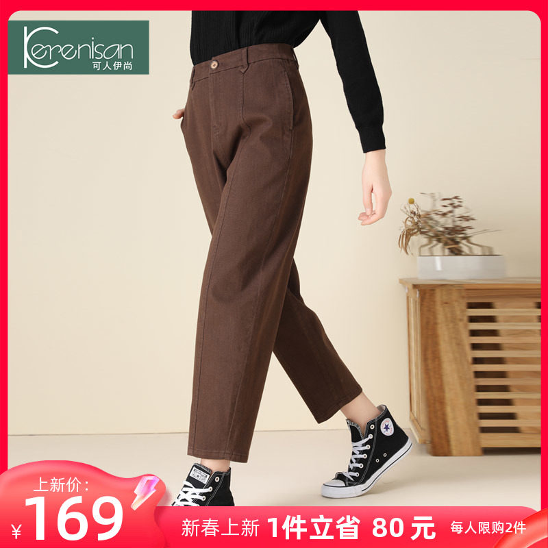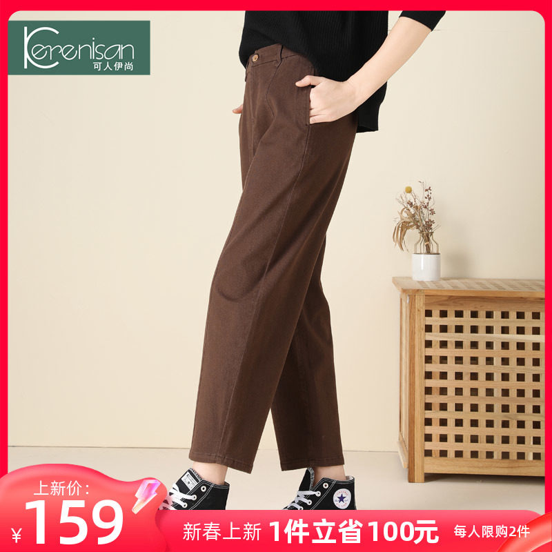 哈伦裤女春季新款纯棉休闲九分裤高腰显瘦牛仔裤卡其色宽松休闲裤