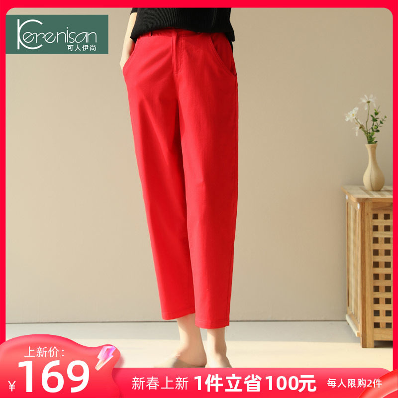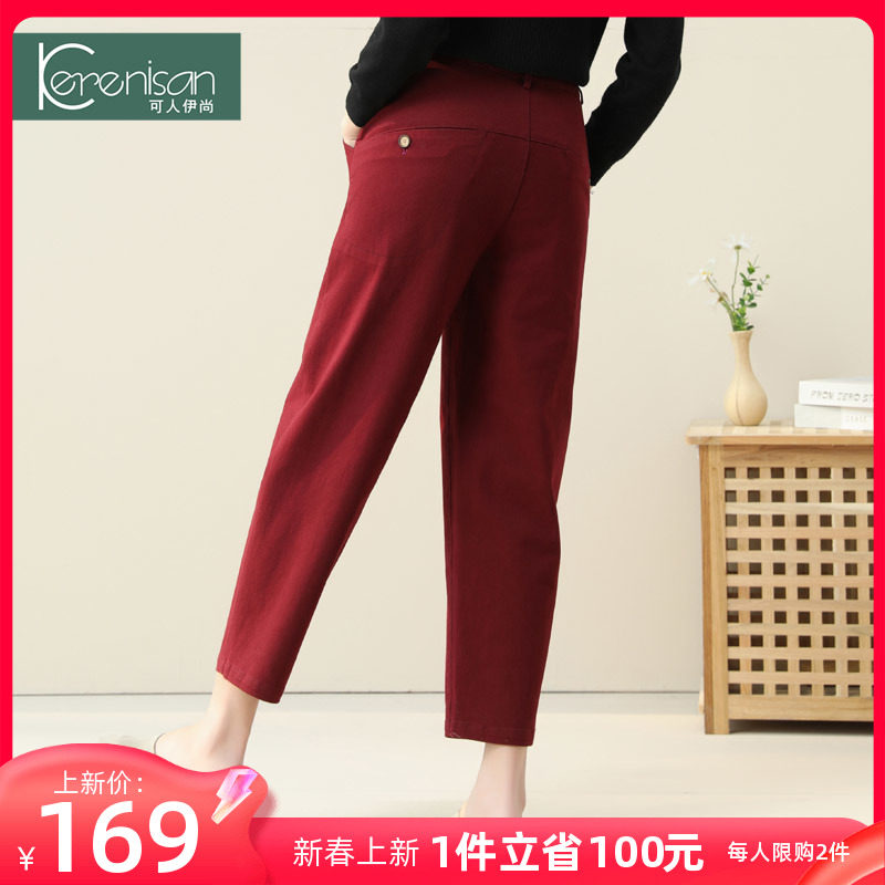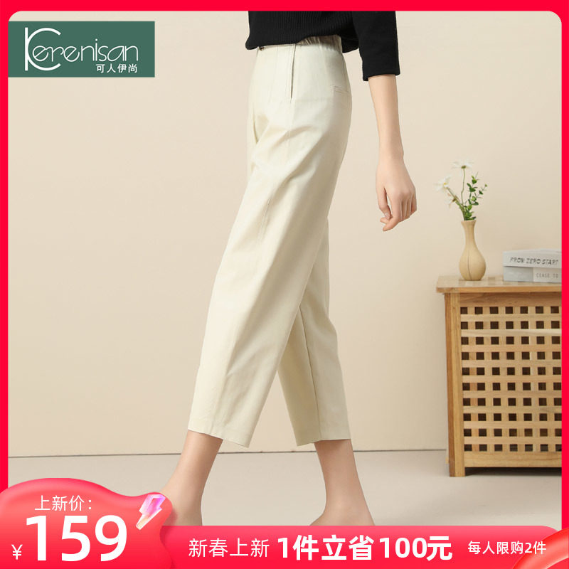休闲萝卜裤女春季新款棉梨形身材镰刀裤显瘦哈伦裤九分高腰小脚裤