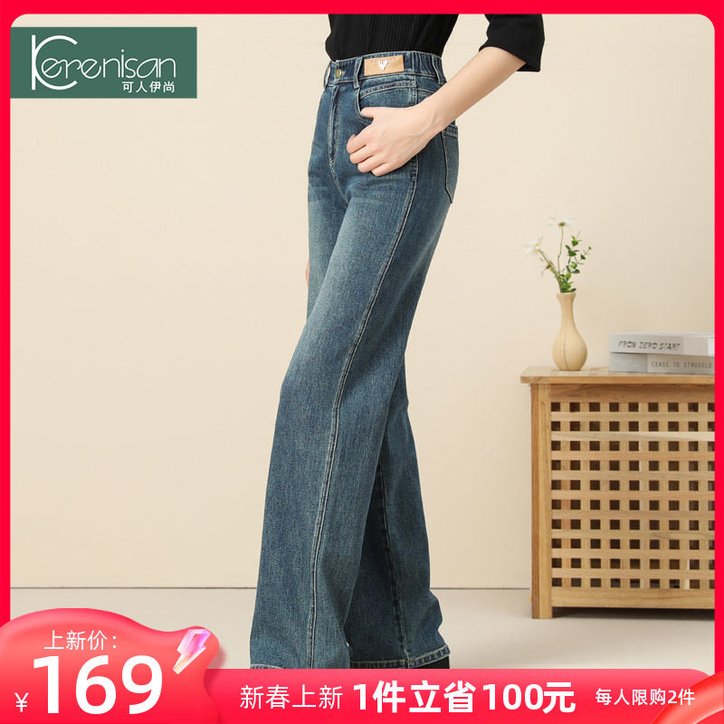 高腰直筒牛仔裤女2024春新款休闲裤大码复古阔脚裤怀旧阔腿裤长裤