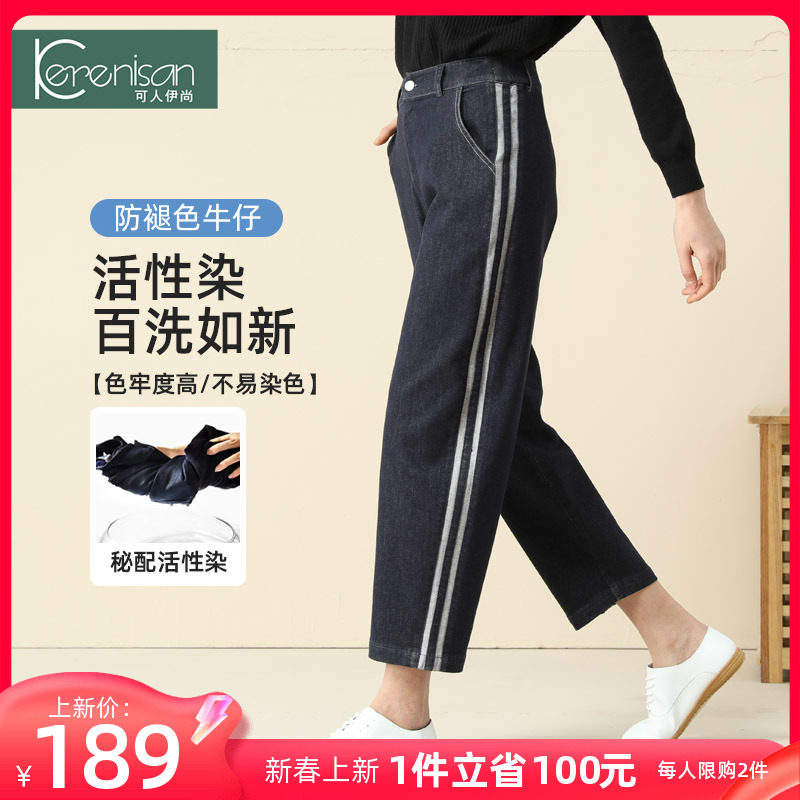 牛仔裤女宽松休闲裤2024春季新款侧条纹防掉色高腰九分裤萝卜裤子