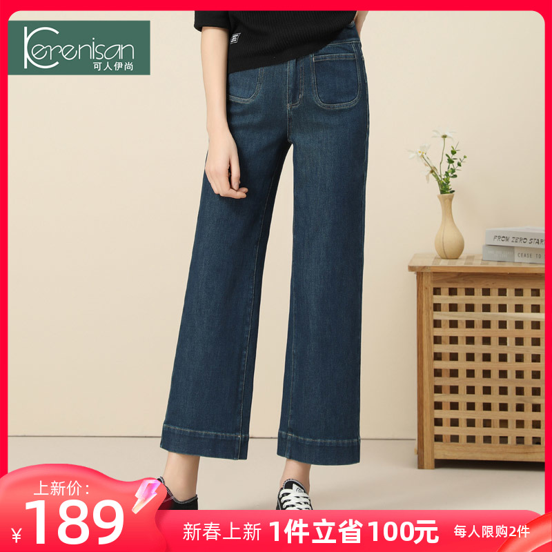 窄版阔腿牛仔裤女休闲裤2024春装新款小个子防掉色八九分直筒裤子