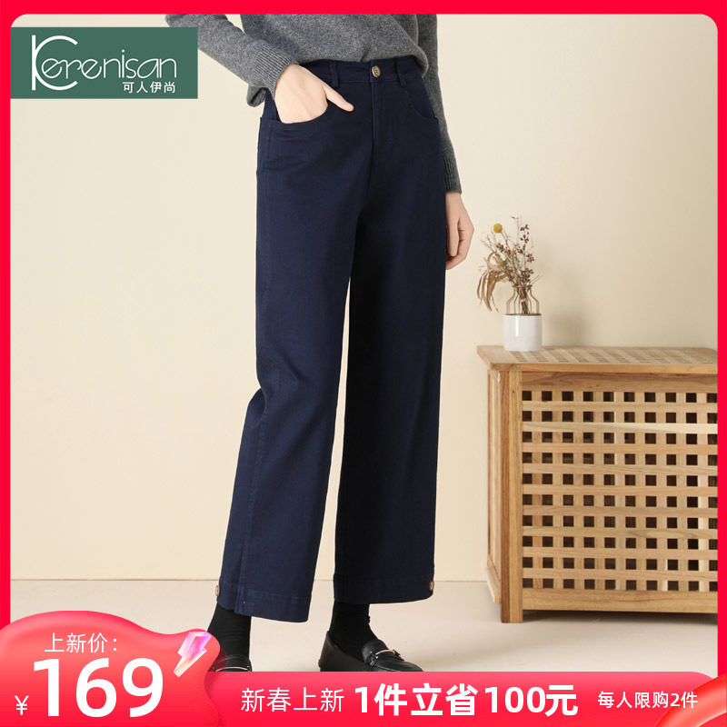 2024春季新款藏青色窄版阔腿裤女宽松显瘦九分裤大码休闲直筒裤子