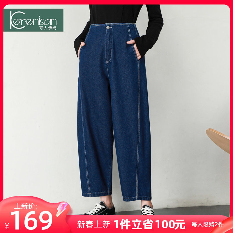 牛仔萝卜裤女2024春装新款高腰宽松休闲裤大码镰刀裤防掉色哈伦裤
