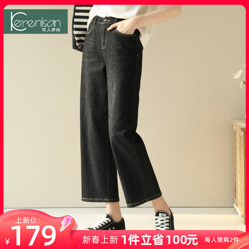 黑色牛仔裤女窄版阔腿裤2024春装新款小个子大码显瘦休闲直筒裤子