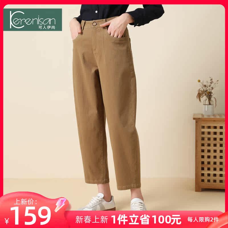 哈伦裤女春季新款纯棉休闲九分裤高腰显瘦牛仔裤卡其色宽松休闲裤