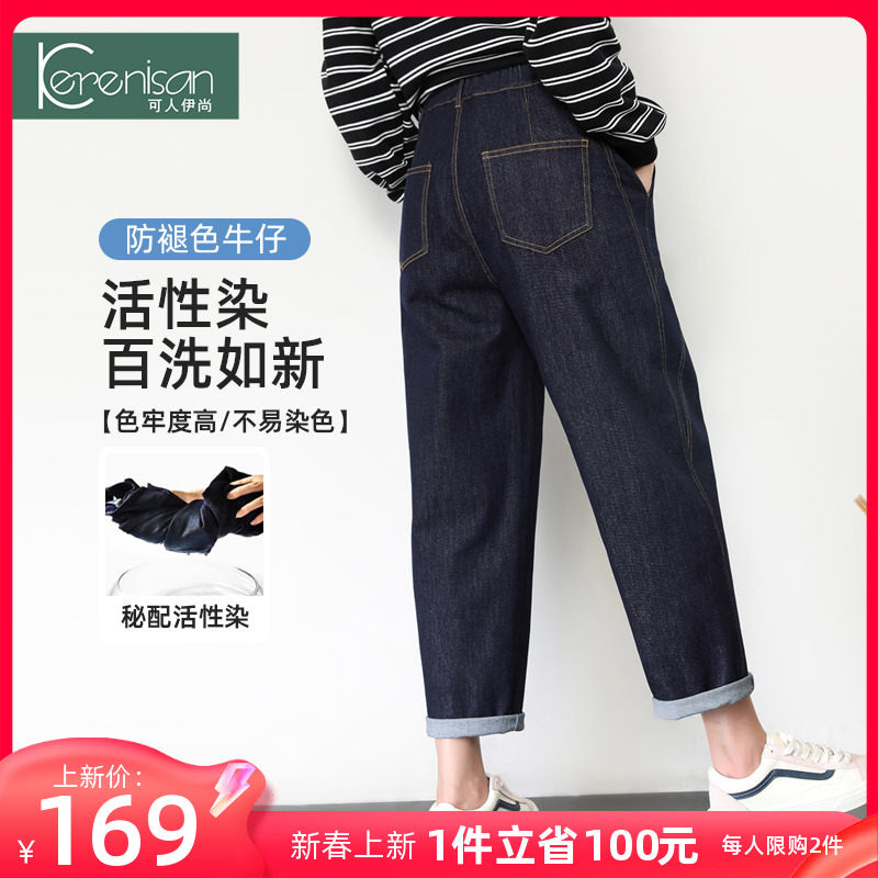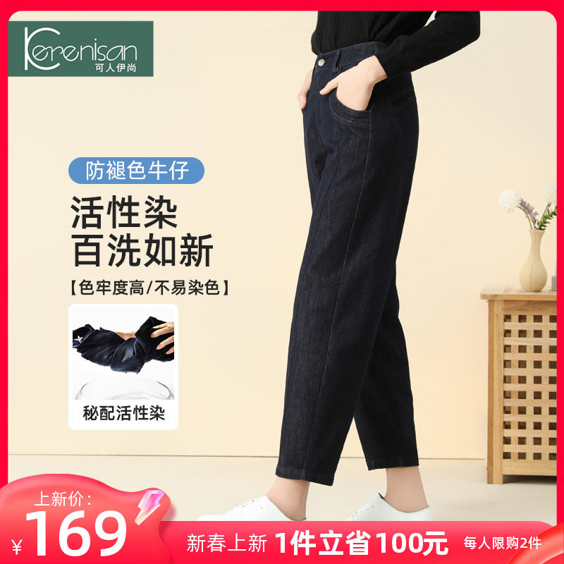 防掉色牛仔裤女哈伦裤2024春季新款高腰宽松休闲裤弹力九分萝卜裤