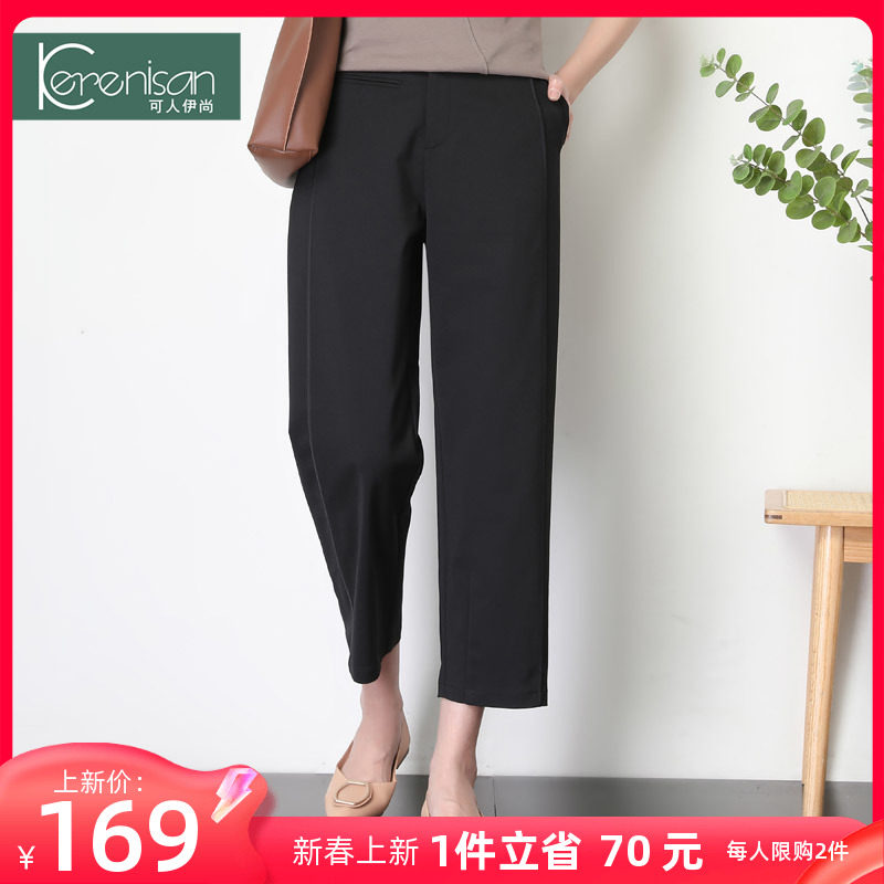 休闲萝卜裤女春季新款棉梨形身材镰刀裤显瘦哈伦裤九分高腰小脚裤
